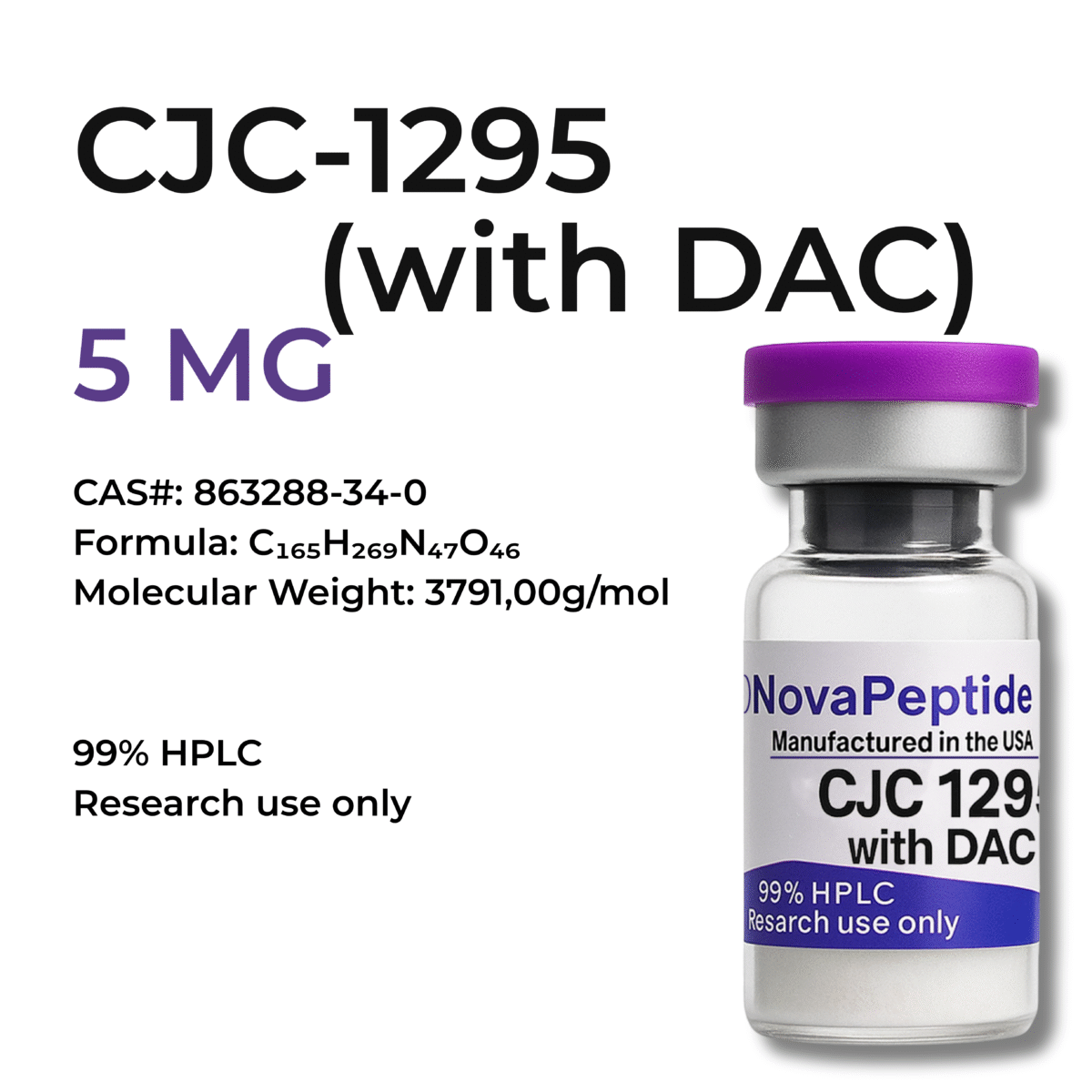 CJC-1295 — это синтетический исследовательский пептид, предназначенный исключительно для лабораторных и научных целей. CJC 1295 представляет собой модифицированный аналог гормона роста-рилизинг гормона (GHRH), что делает CJC-1295 перспективным инструментом для изучения стимуляции эндогенной секреции гормона роста. В лабораторных условиях CJC 1295 используется для моделирования процессов, связанных с регенерацией тканей, восстановлением и влиянием CJC-1295 на белковый обмен. Благодаря пролонгированному периоду полураспада, CJC 1295 позволяет исследовать длительные эффекты стимуляции GHRH-рецепторов. CJC-1295 поставляется в виде лиофилизированного порошка, что обеспечивает удобство работы с CJC-1295 при точном дозировании. Высокая чистота CJC-1295 делает его подходящим для проведения воспроизводимых экспериментов и тестирования гипотез в сфере спортивной физиологии и эндокринологии.